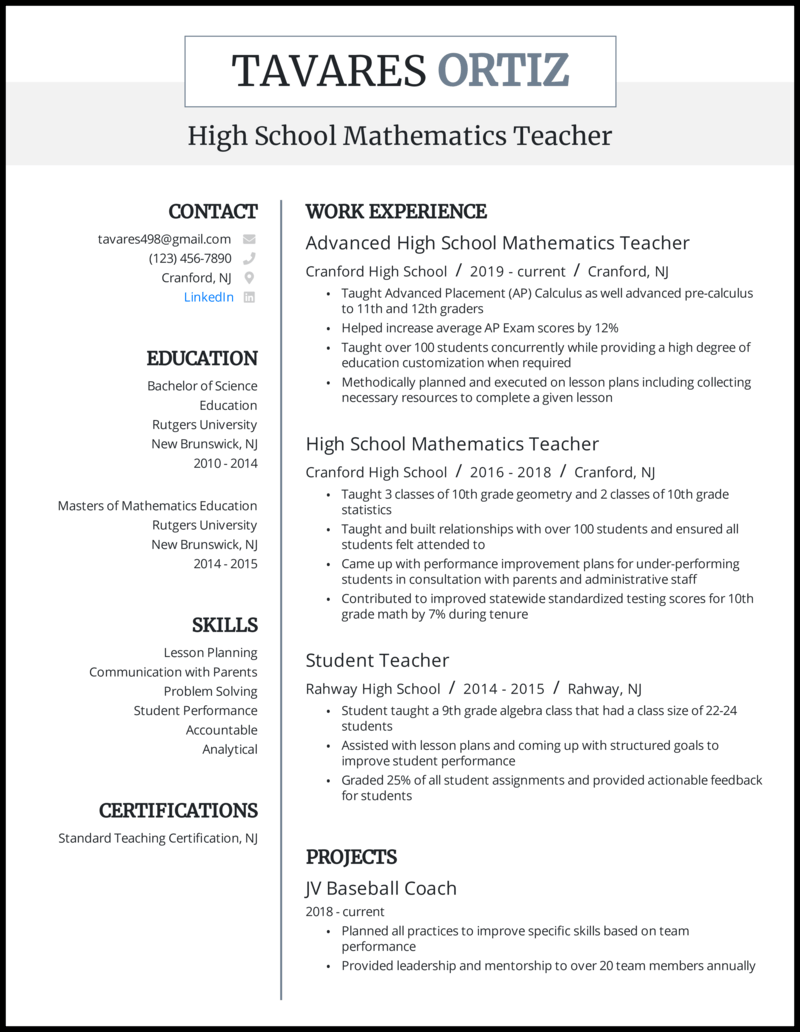 In that case, our website offers an extensive variety of curriculum vitae templates as well. You see, even the best applicant needs a resume format that is easy to read and follow. In your resume for a teaching job, the summary will be a short paragraph about your experience as a teacher, classroom skills, and educational credentials. Download latest teaching maths work resume format. A teaching resume objective would concisely state who you are, the value you bring to the position, and any experience and skills. As a teacher, your cv is your greatest marketing tool. Teacher cv template how to write your teaching cv jobs ie, english teacher cv sample assign and grade class work homework, sample nursery 15 cv for a teaching job proposal letter. Use the reverse chronological order, starting with your most recent teaching position. Because teachers gain their qualifications through formal education, experiencing different situations, attending professional development and earning awards. The slate template is a great cv format for experienced professionals and new job seekers alike. Out of all resume styles, the best format for new teachers is the chronological layout. Use your cover letter to demonstrate that you have what's required for the job. How to write a curriculum vitae (cv format, sample or example for job application).